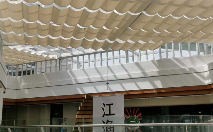 佛山順德大良濤匯廣場采光頂電動遮陽棚 天棚簾實拍